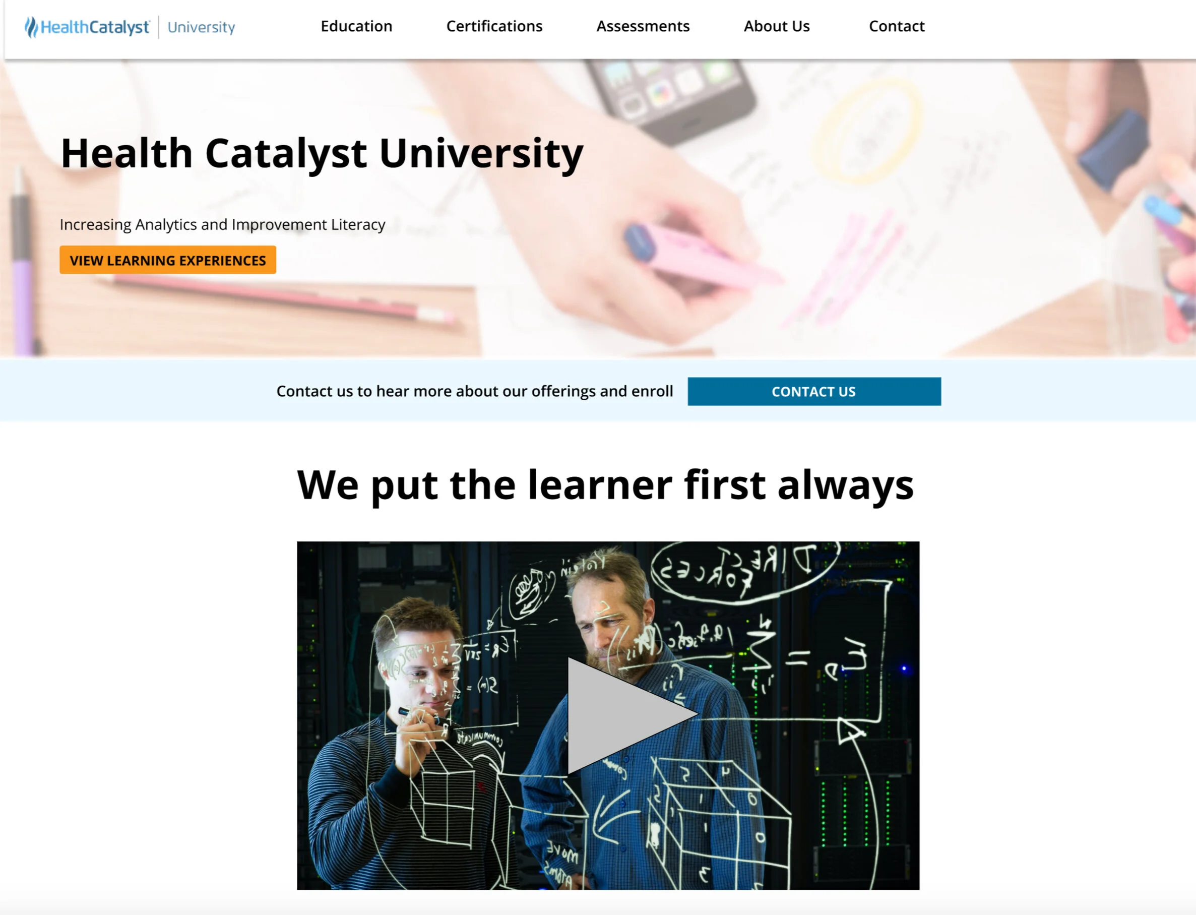 This case study took place during my internship at Health Catalyst. I worked as a learning experience designer to help create learning experiences for our clients and internal team members. Usually, this involved working on the actual training materials or speaking to learners. However, since we were beginning to expand our learning experiences to outside consumer's we needed to update our website and marketing. This project was a unique experience that allowed me to work on our learning experiences' marketing and communication.